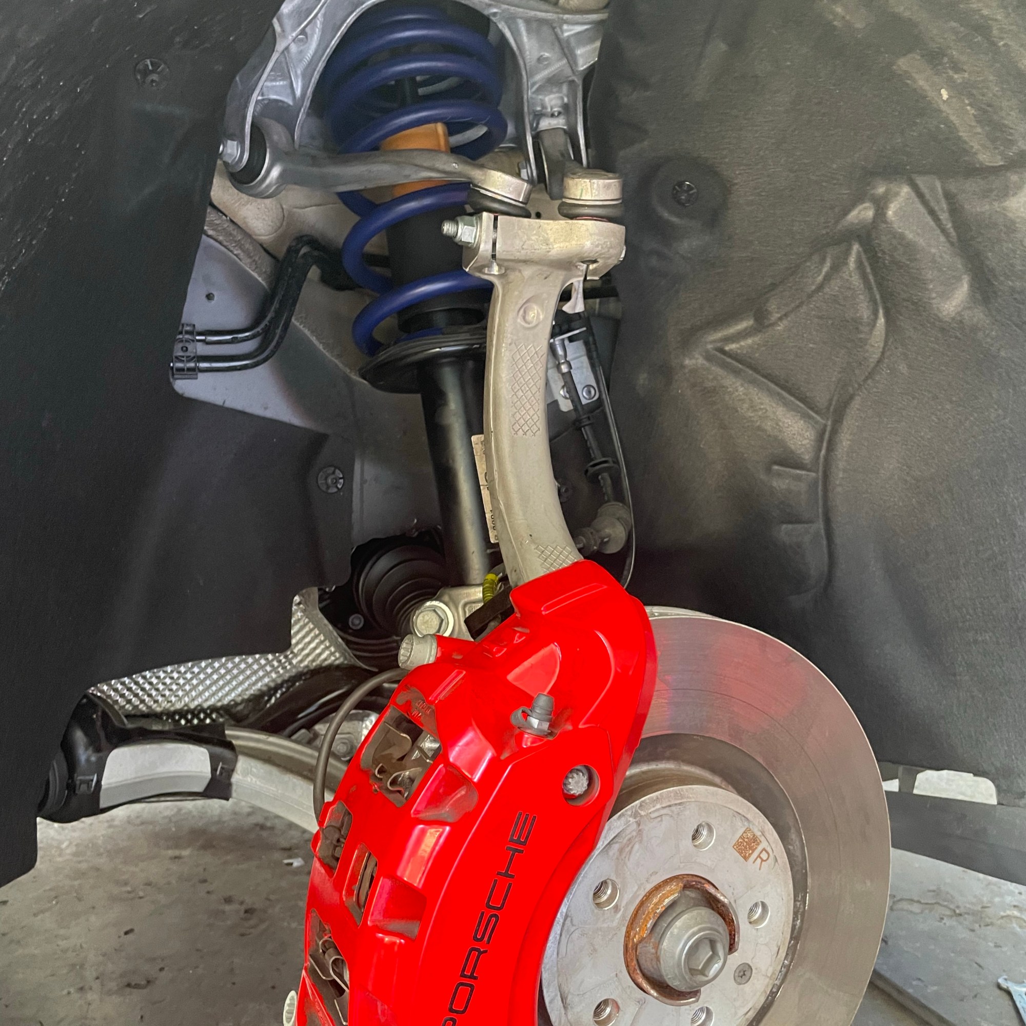 To fix that, I got the Flat 6 Motorsport Wheel Spacer kit, including extended bolts. It’s a 10mm/12mm push, not too aggressive (some go with 15/15).