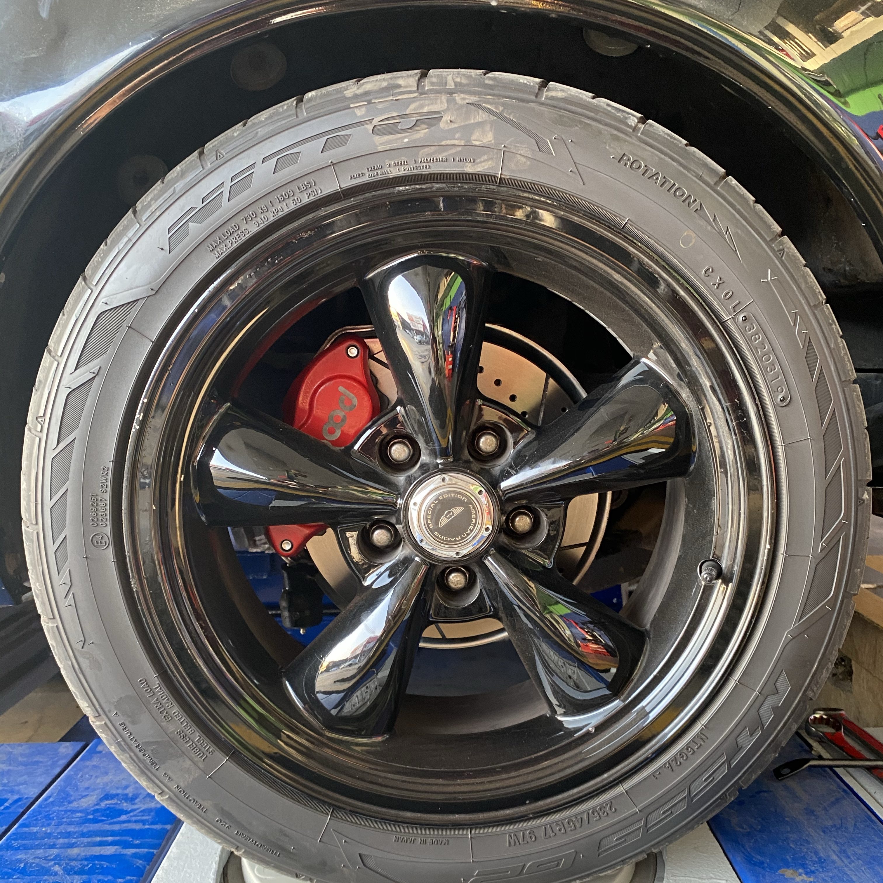 I ended up with the following Disc Brake Kit from The Right Stuff, which includes 11″ drilled/slotted Rotors, forged stock height Spindles, and Wilwood Dual piston Calipers in Red. (Kit #AFXWK32Z).