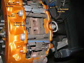 If that’s the case, all you need is an OEM Cross Spring Clip (#41090‑JF20C), install it on the caliper tie rod, and insert the pad pin back from the inside of the caliper, through the new spring clip and to the outside of the caliper.